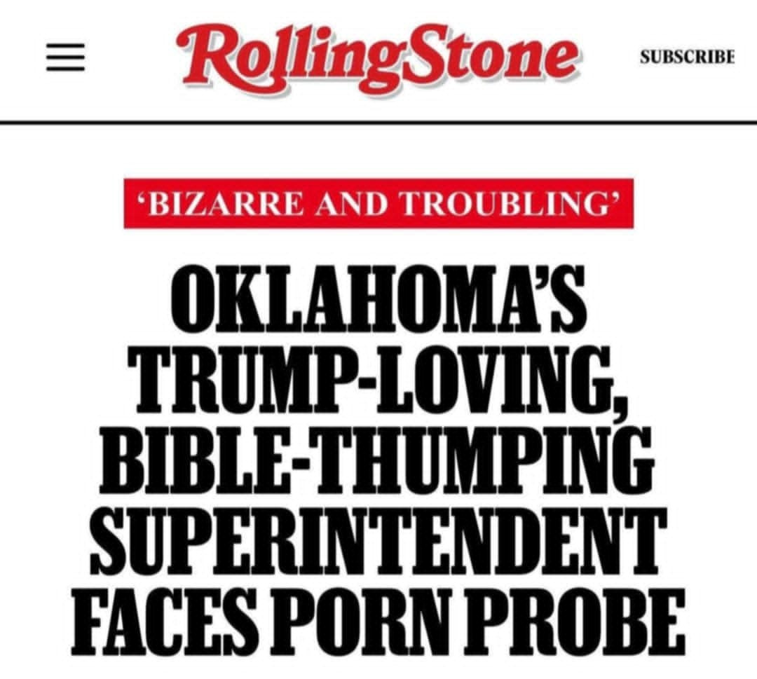 Walters has aggressively characterized himself as Oklahoma’s MAGA Supporter-in-Chief, Christian Nationalist-in-Chief, and Thrower-of-the-First-Stone-in-Chief throughout his tenure. The rabid fervor of his political ambitions is well known. The moral posturing. The loud denouncements of secular education. The spouting of anti- “woke” platitudes. He has staked claim as poster child for defending Moral Character.